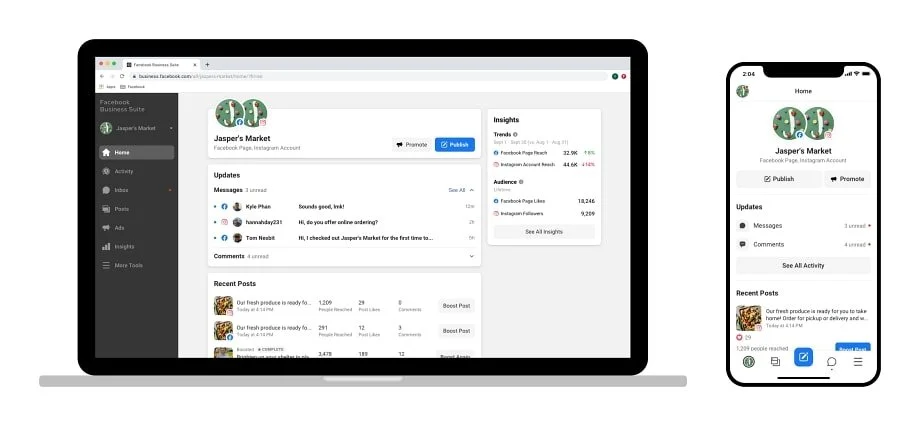 สามารถจัดการเพจร้านค้า (Facebook Page), ร้านค้าบน Instagram, บัญชี WhatsApp และบัญชีโฆษณาหลายบัญชีได้ใน Facebook Business Manager ( Meta business suite) ที่เดียว
