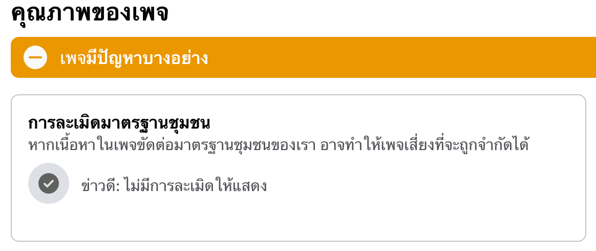 เพจสีเขียว หมายถึง เพจของคุณมีไม่พบปัญหา ไม่เคยทำผิดเลยค่ะ ถือว่าเป็นคุณภาพที่ดี สามารถใช้งานได้อย่างปกติ